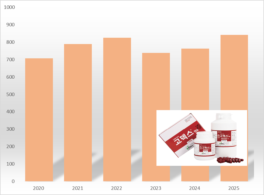 셀트리온제약의 간장약 ‘고덱스’가 지난해 처방액 신기록을 경신했다. 급여재평가 탈락 위기와 약가 인하를 겪으면서 상승세가 한풀 꺾였지만 종근당의 영업 가세 이후 반등하며 3년 만에 최대 규모를 나타냈다. 22일 의약품 조사기관 유비스트에 따르면 고덱스는 지난해 외래 처방금액이 841억원으로 전년대비 10.3% 증가했다. 지난 2022년 처방액 825억원을 넘어서며 3년 만에 최대 규모를 형성했다. 고덱스는 셀트리온제약의 전신인 한서제약이 2000년 개발한 개량신약이다. 아데닌염산염, 리보플라빈, 비페닐디메틸디카르복실레이트, 시아노코발라민, 오로트산카르니틴, 피리독신염산염, 항독성간장엑스 7개 성분으로 구성된 복합제다. 고덱스는 알코올성지방간과 비알콜성지방간염(NASH), 염증성간질환, 바이러스성간염 등 간세포 손상의 간접 지표인 트랜스아미나제(ALT)가 상승한 각종 간질환에 처방된다. [데일리팜| 26.01.22]