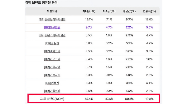 고순도 원료를 강조한 마케팅으로 상위권 브랜드들을 맹추격 중입니다.