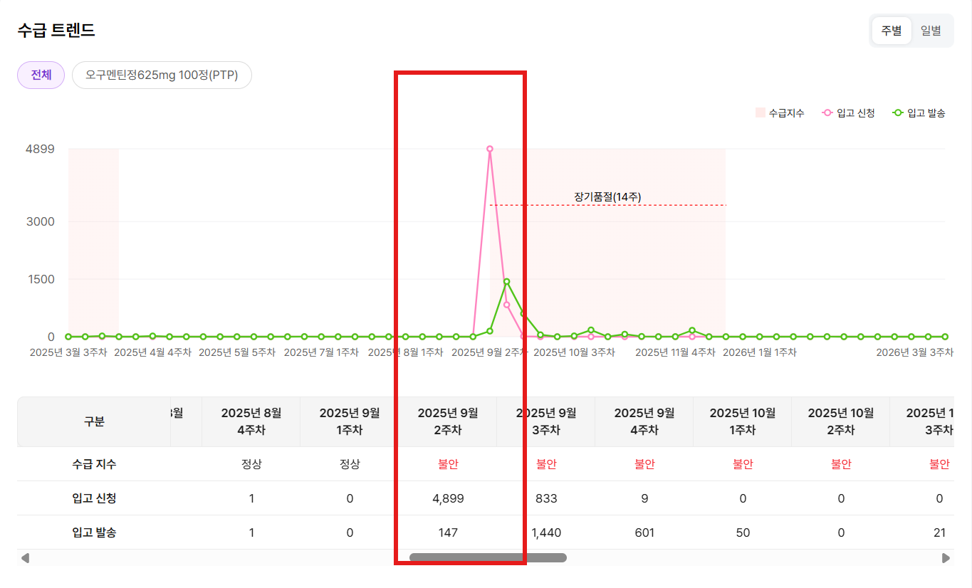 [오구멘틴 수급 트렌드: 2025.09 비정상적 수치 변화]