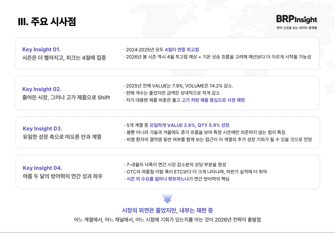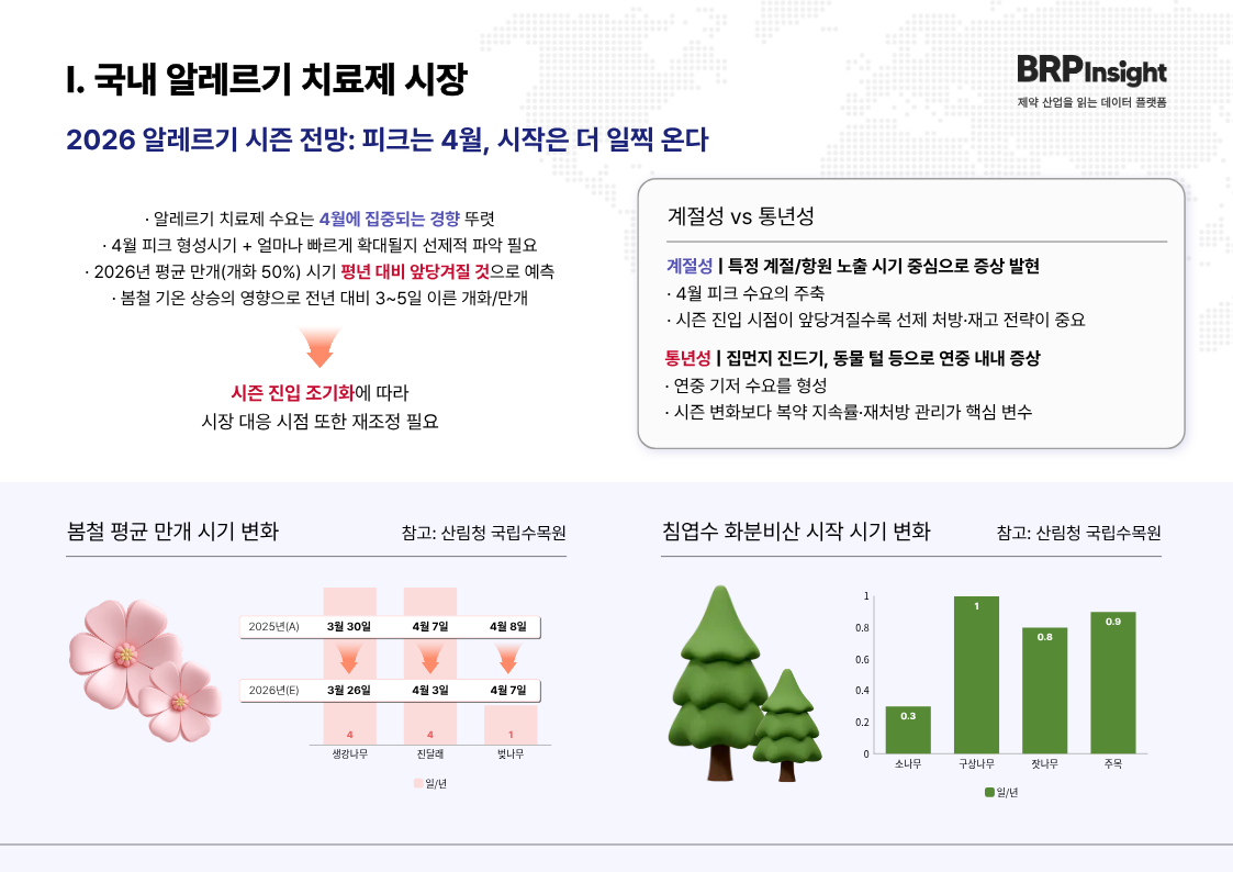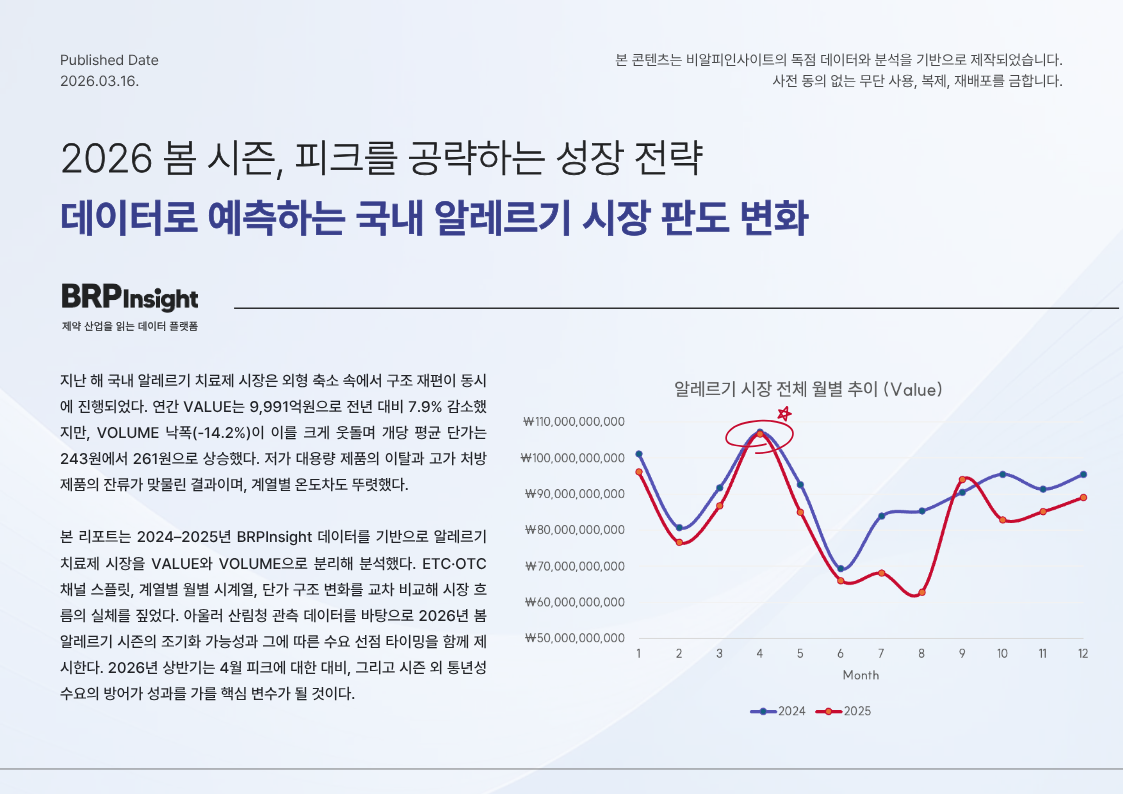 Market Insight국내 알레르기 시장 판도 변화와 4월 피크 공략 전략2026.03.1814 #싱귤레어#씨잘#씨투스#아바미스나잘스프레이#오트리빈#글락소스미스클라인#삼아제약#한국오가논#한국유씨비제약#헤일리온코리아